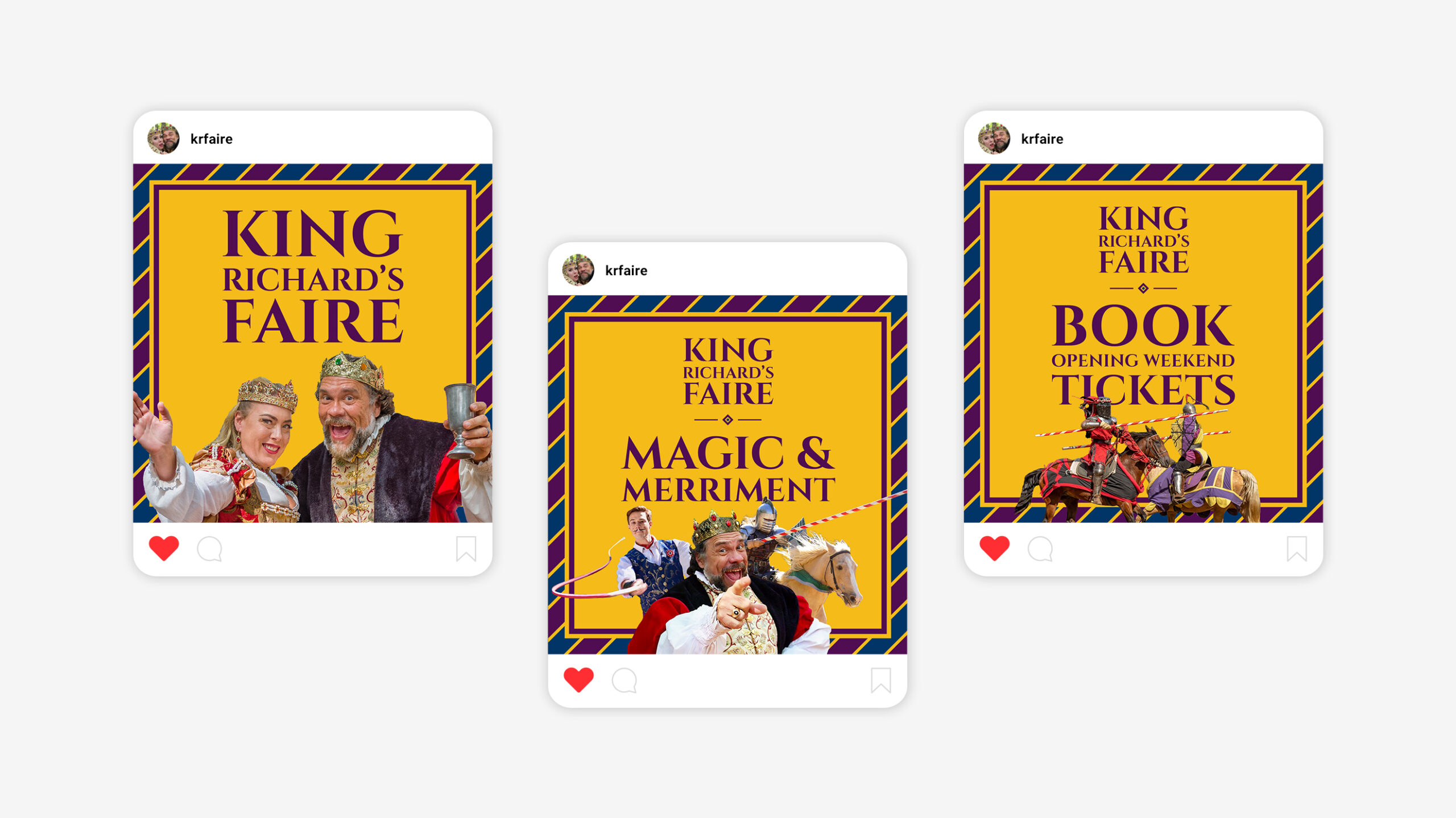 Our marketing plan for King Richard’s Faire was created with the understanding that there was some hesitation among local faire-goers that the change in location and ownership would change the faire entirely. Our strategic approach was a gradual tweak to existing branding, to visually reassure guests that the core elements of the beloved faire—like local performers, artisans, and games—wouldn’t be changing.