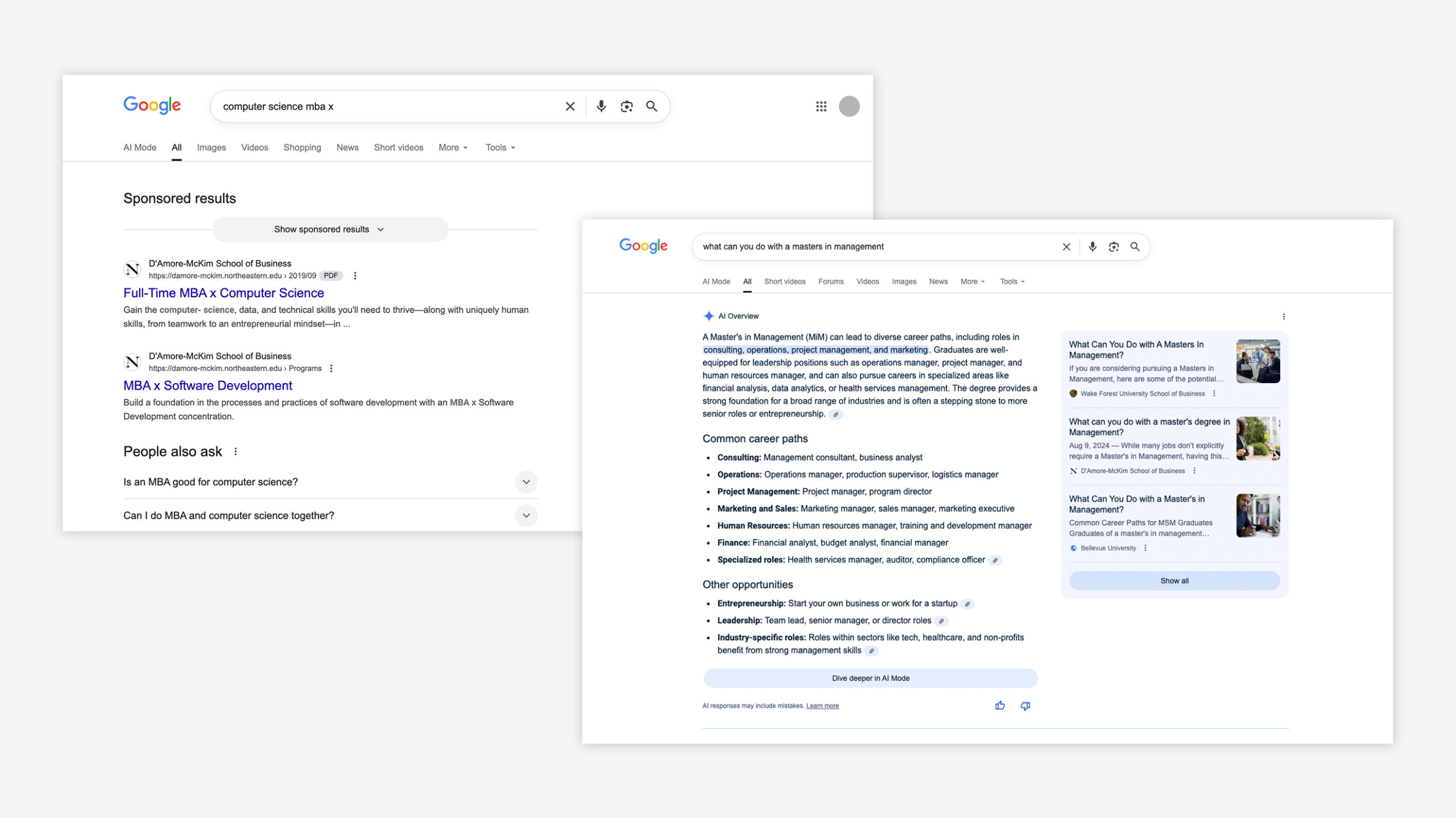 The D’Amore-McKim School of Business (DMSB) at Northeastern University wanted to increase leads for their master’s degree in business analytics. They turned to 5 Horizons for a strategy, and we recommended a cluster content page to rank higher in search results, boosting web traffic and ultimately increasing leads.